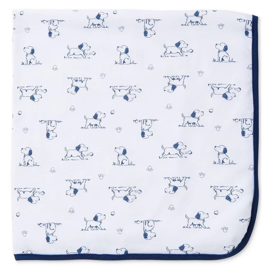 お昼寝タイムから遊び時間まで、優しい肌ざわりのコットンでできた子犬柄のブランケットが、赤ちゃんに寄り添います✨